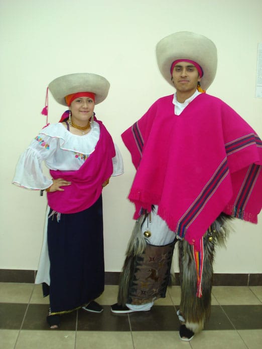 Para la tradición de la vestimenta de las mujeres se caracterizaban por llevar una camisa blanca y larga, que decorados florares bordados de muchos colores, elaborados a mano que se colocaban en la parte del pecho, la espalda y los hombros. También llevan encajes en la parte del escote y mangas. Además de tener anacos hechos de paños, de colores blancos y azules marinos o en su defecto negro, estos son pedazos de tela de forma de rectángulo que son usados como faldas, sujetas por una faja,son decorados con collares de color dorado, pulseras de coral o de otros materiales que sean de plástico, anillos y zarcillos grandes,llevan atado en el cabello unas cintas de diversos colores, amarrados en formas de trenzas. Para la vestimenta de los hombres indígenas no es muy complicada llevan un gran sombrero hecho de paño, amarrado con trenzas que representa a la identidad que entiende la elegancia que poseen los indios y mestizos,un pantalón blanco que llega hasta los tobillos,una camisa natural blanca. Usan un poncho hecho de lana que representa a los indígenas de este territorio y unas alpargatas blancas